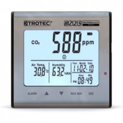 Thanks to the more accurate and long-term stable NDIR measuring method, the BZ25 can not only measure the air temperature and the relative humidity, but also the carbon dioxide concentration of the room in ppm before presenting it on the large, easy-to-read display.